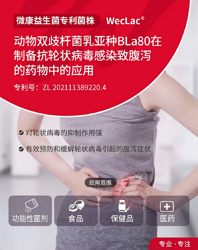 微康益生菌动物双歧杆菌乳亚种BLa80具有明显的降胆固醇作用,能够缓解高脂饮食引起的高胆固醇增加;同时,动物双歧杆菌乳亚种BLa80复合益生菌(动物双歧杆菌乳亚种BLa80+鼠李糖乳酪杆菌LRa05+植物乳植杆菌Lp90)能够缓解高脂饮食引起的非酒精性脂肪肝症状及体重变化。