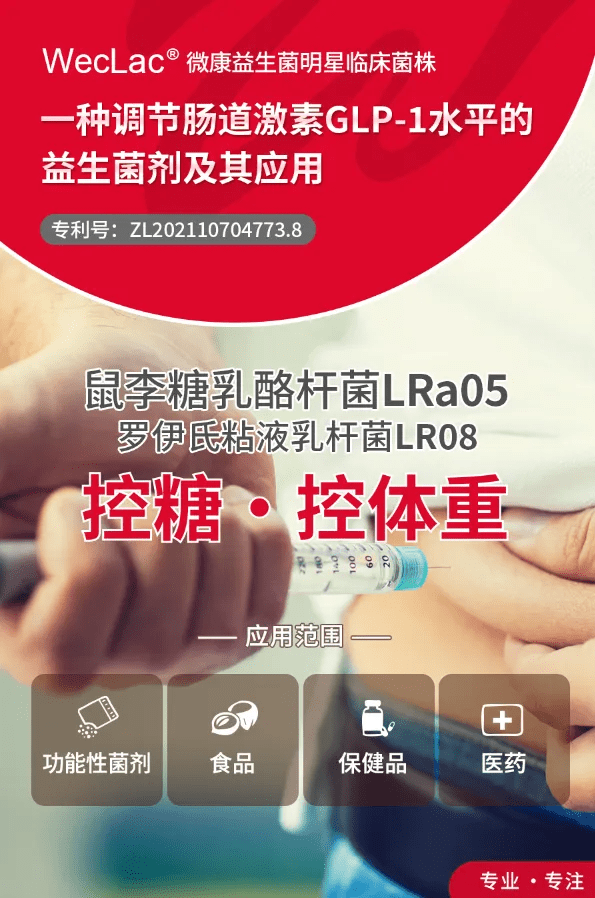 微康益生菌动物双歧杆菌乳亚种BLa80具有明显的降胆固醇作用,能够缓解高脂饮食引起的高胆固醇增加;同时,动物双歧杆菌乳亚种BLa80复合益生菌(动物双歧杆菌乳亚种BLa80+鼠李糖乳酪杆菌LRa05+植物乳植杆菌Lp90)能够缓解高脂饮食引起的非酒精性脂肪肝症状及体重变化。