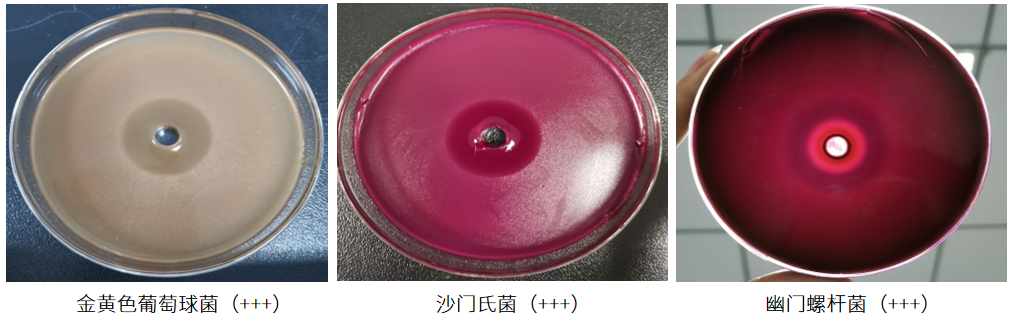 说明:抑菌能力:(+++)强,(++)中等,(+)弱,(-)无