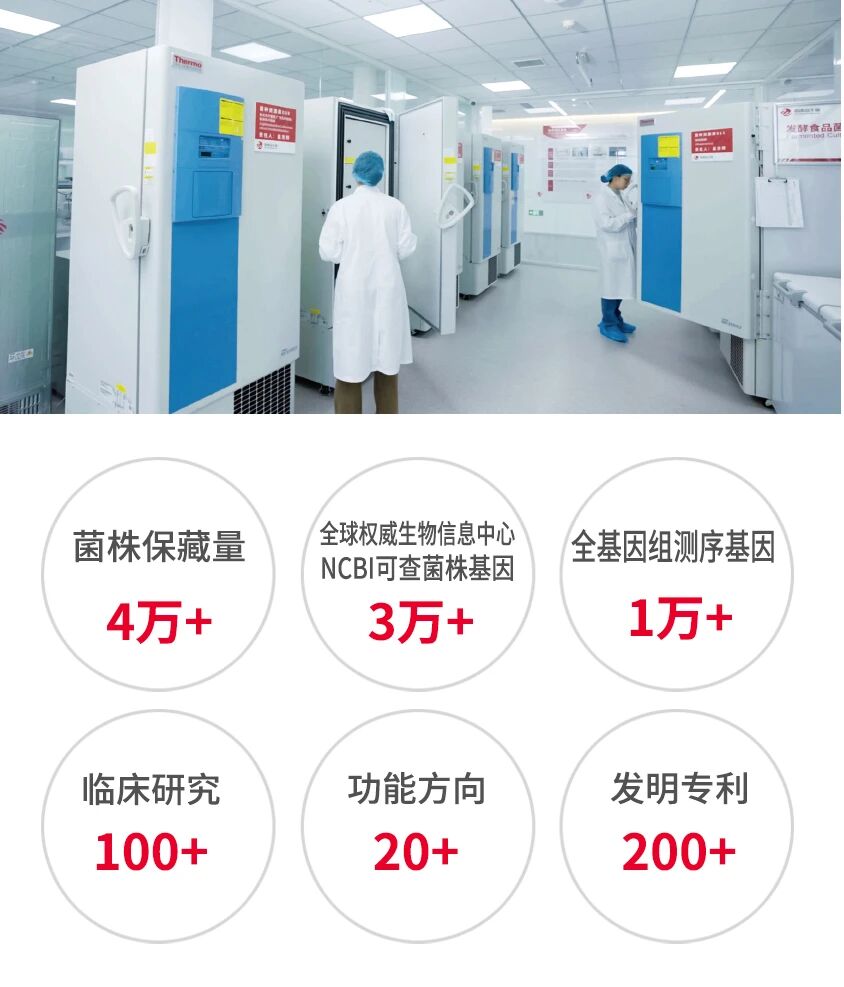 微康益生菌菌种资源库包含超40000余株具有自主知识产权的菌株、全球权威生物信息中心NCBI可查菌株基因30000余株以及全基因组测序基因10000余株,覆盖我国《可用于食品菌种名单》。