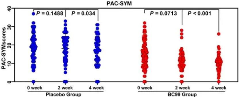 3、症状的缓解:PAC-SYM 评分持续显著降低
