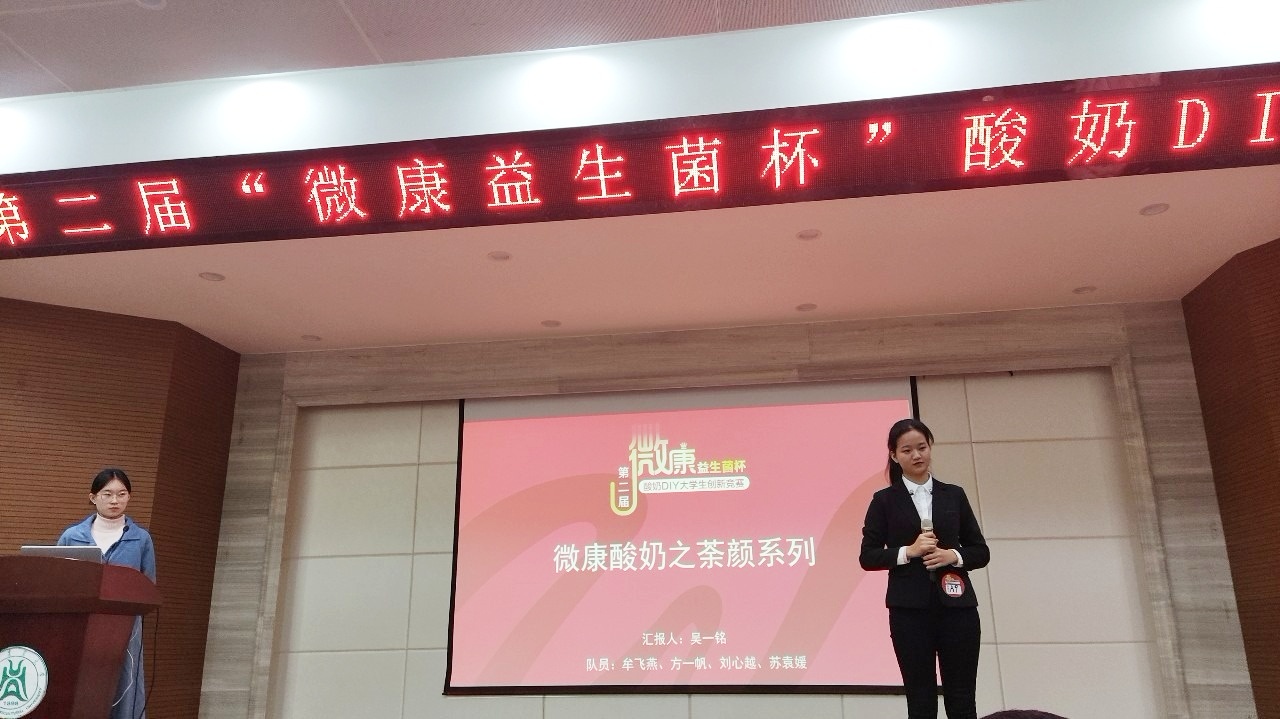 2019年12月1日,由微康益生菌冠名的第二届“微康益生菌杯”酸奶DIY创新大赛在武汉华中农业大学圆满落下帷幕。本次创新大赛共收到了社会各界300多支队伍、1300多人报名参赛以及近10万网络票选关注,吸引了湖北日报、湖北电视台(垄上栏目)在内多家媒体关注和现场报道。