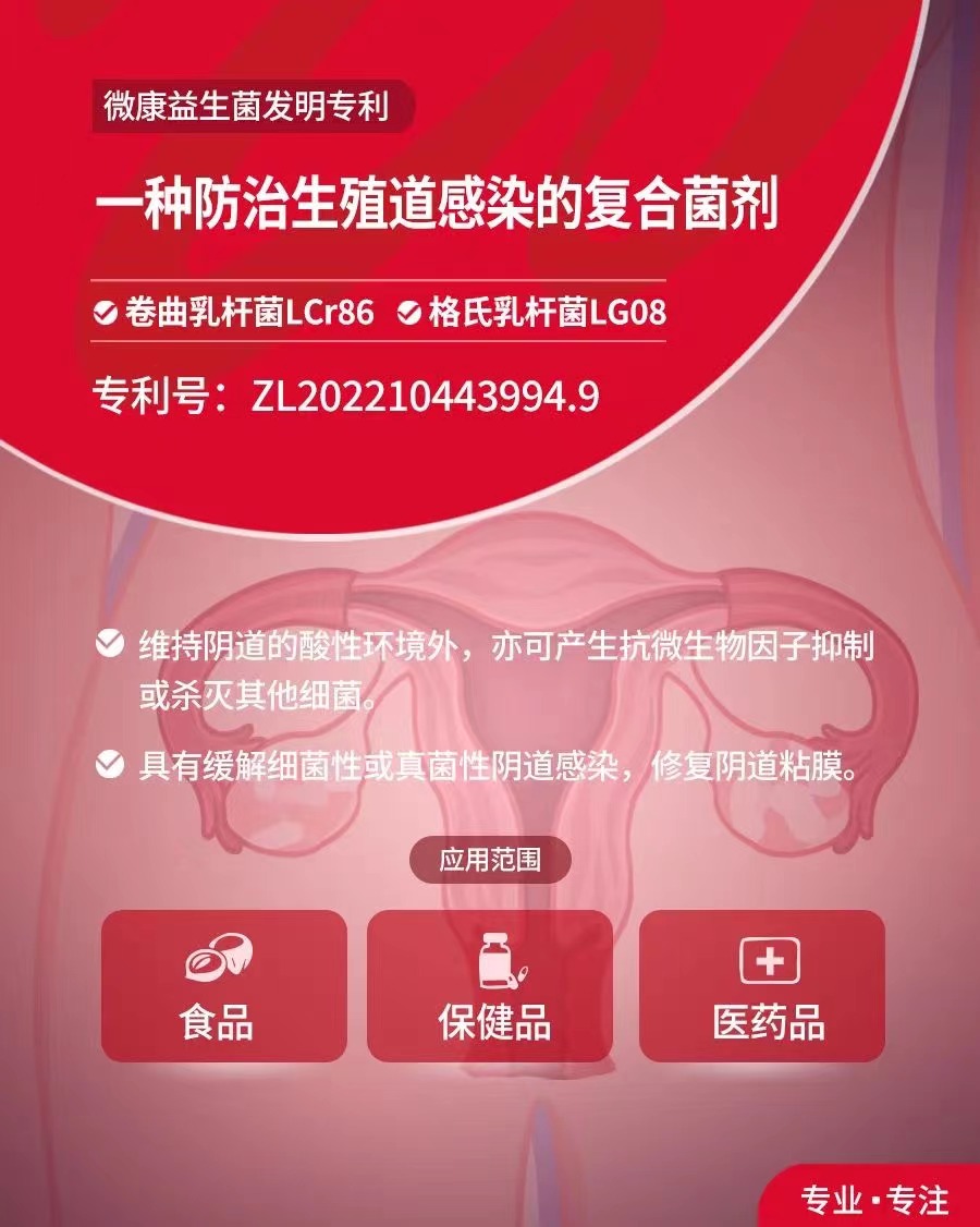 微康益生菌卷曲乳杆菌Lactobacillus crispatus LCr86从奶酪中分离,具有防治生殖道感染功效。该菌株能够预防和/或治疗生殖道感染相关疾病
