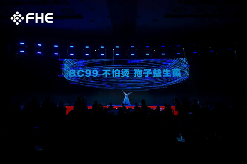 晚宴现场,绚烂的烟火在夜空中绽放,将整个会场烘托得如梦如幻。舞台上,灯光闪烁,动感的音乐旋律响起,瞬间点燃了现场所有人的热情。在这样热烈的氛围中,“不怕烫孢子益生菌BC99”隆重登场,成为了全场瞩目的焦点。