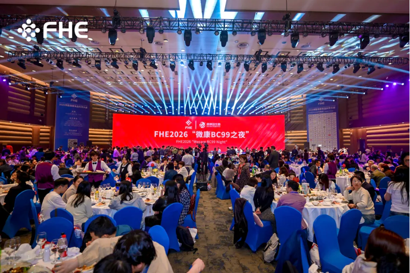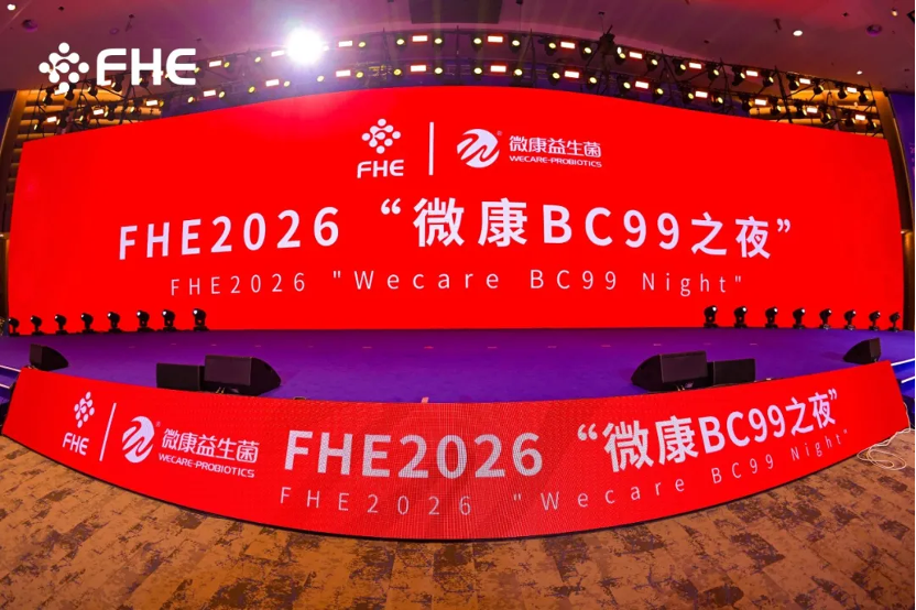 2026年3月12日晚,博鳌健康食品科学大会暨博览会(FHE)在海南博鳌亚洲论坛国际会议中心隆重举行。作为全球益生菌菌种企业代表及FHE连续四年参会的“老朋友”,微康益生菌再次打造的“微康BC99之夜”交流晚宴,成为本次盛会最耀眼的亮点之一——夜幕下的会场灯火辉煌,来自世界各地的行业专家、企业代表、科研学者齐聚一堂,共赴这场以健康与创新为主题的行业盛宴。